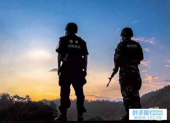 全副武装的执勤民警在晨曦站岗 何志林 摄