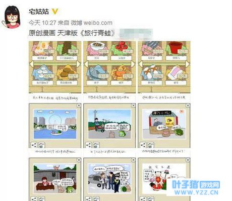 最近 有一只青蛙特别红 朋友圈被它刷屏 但是 咱津版的《旅行青蛙》 您了见过吗? 网友宅姑姑 发了一组原创漫画作品 天津蛙 天津味儿