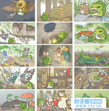 青蛙不吃害虫却吃面包三明治,而且不住池塘却睡大床,每天都有写信的习惯,房间里放着珠宝,还有一栋豪宅,所有的朋友都只在门口逗留却从不进屋,这一切都表明他原本可能是一位王子。 参考《青蛙王子》的故事桥段,可以推测他被女巫施了魔咒才变成青蛙,唯有找到愿意亲吻它的那位公主,才能恢复人身。 小青蛙很宅,除了出去旅行,几乎都宅在家里,而唯一支持它出门的动力,就是寻找那位公主,它的一生都在为爱旅行。