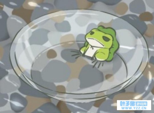 跟第一张旅行照片一样,这张旅行照片中,蛙儿子也是孤身一人坐着小碗在河流中漂流着,带着一股忧伤的情绪,似乎遇到了不开兴的事情。 第四张旅行照片