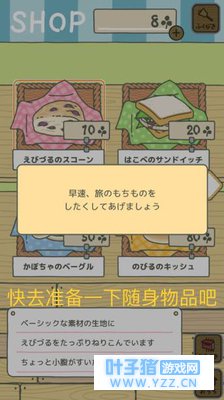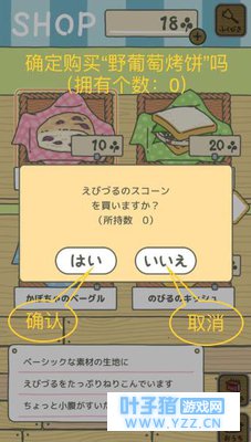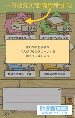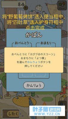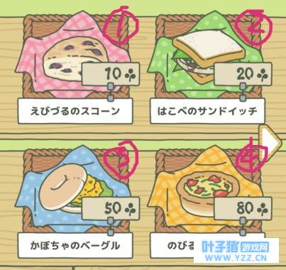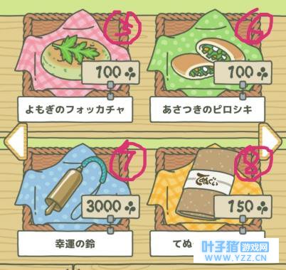 【购买便当】用收割获得的18枚三叶草去商店买便当时,点击“野葡萄烤饼”,此时出现红框圈定,再点击一次就会出现购买确认窗口了。