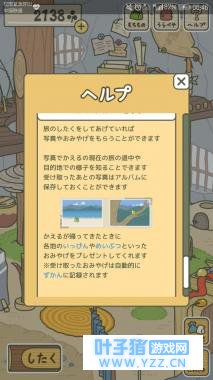 青蛙的旅行会给你带来照片和礼物,在收到的照片里你可以看到青蛙所在地的样子,拍下的照片可以保存入它的相册青蛙回来的时候,会因为目的地的不同,送给你不同的礼物,新的礼物会自动保存在图鉴里面