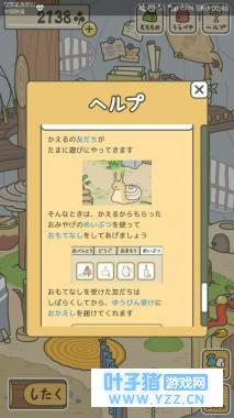 青蛙的朋友有时候会过来,那时候你收到的礼物就可以派上用场了,来招待他吧朋友在接受礼物一段时间后,会返回送来回礼