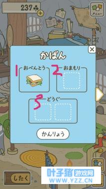 呱在家的时候,可以往它包里装出门用的东西,从左到右,从上到下分别是:食物,护身符类,道具类。其中食物是必备。其他的可以改变旅途,放好后,点击最下中间那个日语按钮,成灰色就好了。