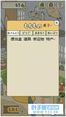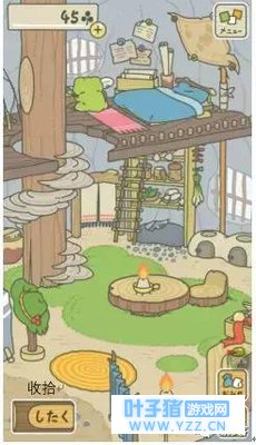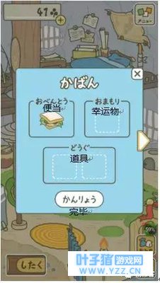 准备行李: 青蛙在家的时候点击左下角黄色的按钮,可以收拾包内的行李和桌上的东西,包括便当、护身符和道具。