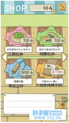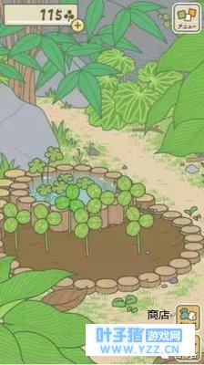 三叶草用来购买青蛙的旅行用品。首次游戏,泥坛里会长满三叶草,收割了之后有500个,可以去买东西。三叶草隔一段时间就会自动长出来,不需要手动种植。如果想要更多三叶草,可以点击左上角数字后的加号。 房间内: 在青蛙的房间里可以做的事情是给蛙准备行李,点击门帘可以查看图鉴和相册。