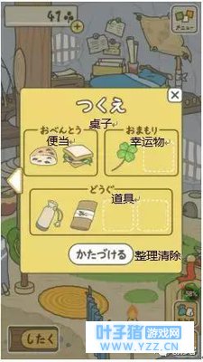 桌上: 桌上的行李收拾好了之后直接退出,不必点击“かたづける”,否则会将已设置好的东西清除。