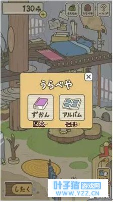 图鉴和相册: 青蛙每次出行都会寄来明信片,可以保存起来。 门帘之后可以查看图鉴和相册。图鉴包括各种珍宝和特产,相册则收藏了青蛙带回来的明信片。