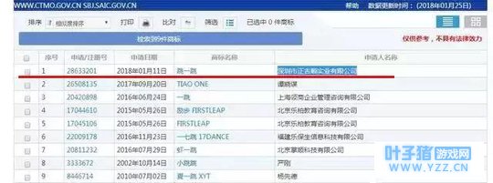虽然商标抢注时有发生,但是“旅行青蛙”的这波操作,在下佩服! 可是,话说回来,要照此推算的话,那前段时间火起来的 《跳一跳 》、 《恋与制作人》 是不是也可以注册商标了? 忍不住去查了下,果然~都已经在注册商标的路上了~ 跳一跳在2018年跨年的那几天被大家刷的火热,每天都在刷新着分数,于是: 在2018年1月11日的时候,“跳一跳”被深圳某家公司递交了商标申请书。