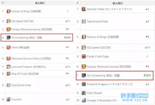 全球iOS&&Google Play综合收入榜 在经典端游IP以及腾讯资源链的加持下,《QQ飞车》手游在新用户的导入上并不难。而在这之后,《QQ飞车》手游能够冲上全球综合收入榜单第六,笔者认为主要原因在于其在移动端的适配上做到了目前最好的程度,在国内竞速类手游缺少“领头羊”的情况下,《QQ飞车》手游抓住了核心的目标用户。另一方面,在于制作团队对于手游用户的属性把控,游戏中的休闲玩法得到重视,满足了更多休闲用户的需求。 2.又一款“奇迹”IP的狂欢:《奇迹MU:觉醒》收入榜第4 除了“传奇”IP之外,“奇迹”同样深受国内厂商重视,到了怎样的程度呢?“可以说,奇迹IP改编的游戏在国内已经成功了一半。”确实如此,在去年12月份的中国iOS收入榜中,龙图游戏的《奇迹:最强者》拿下了第三的好成绩。 今年1月份《奇迹MU:觉醒》拿到了接交棒,这款腾讯发行的“奇迹”IP手游1月2日上线,便一直稳定在iOS游戏畅销榜TOP5。根据App Annie发布的数据,在中国iOS游戏收入榜中,《奇迹MU:觉醒》排在第四,而在全球iOS游戏收入榜中,同样进入了TOP10,排名第七。