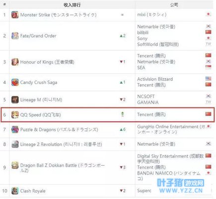 《Finger Driver》 Ketchapp制作的这两款游戏,让笔者想到去年年末微信小游戏宣布与Ketchapp的合作,未来或许在微信上也能体验到这两款具备“中毒性”的游戏。 二、谁又是一月份的“吸金”新秀? 1.《QQ飞车》一骑绝尘:进入双榜全球收入第6 去年12月末,《QQ飞车》手游上线iOS平台,一周内DAU达到2000万,同时登顶iOS游戏免费榜、畅销榜。这款经典端游IP改编的产品在移动端的表现令人意外,在厂商的注意力都放在“吃鸡”上时,《QQ飞车》在2017年年尾却冲了出来。在App Annie发布的这份报告中,《QQ飞车》手游仅凭借iOS平台上的收入,营收已经超过了多款榜单上的“常客”,取得了全球iOS&&Google Play综合收入榜第六的成绩。另外,在中国以及iOS游戏下载榜中,这款竞速类手游排在第二。