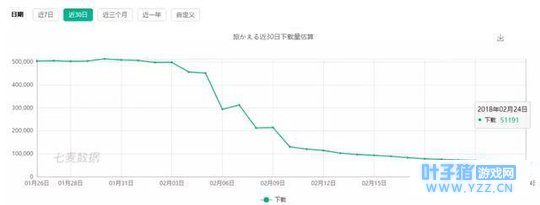 这款玩法简单的放置类游戏经过社交平台的催化一举在国内风靡,轻松达到了很多产品难以企及的高度。但同样这一爆款也面临着热度滑落问题,目前《旅行青蛙》在App Store游戏免费榜中排在第22位。七麦数据同样显示了这款游戏的下滑趋势,昨日《旅行青蛙》的iOS预估下载量为5万左右,仅达到1月份的十分之一。