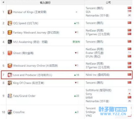 如果从游戏玩法本身而言,《恋与制作人》算不上是稀罕物。笔者认为,恋与的打法还是在于对于目标用户群的精准了解,无论是四位男主角以及玛丽苏/悬疑剧情的设计,还是提供拟真的主角互动,都让不少女性用户为之疯狂,在满足少女心上叠纸网络可以说是颇有心得。女性游戏市场的空缺是其能够成为爆款的原因之一,社交平台UGC内容的催化更是加了一把火。凭借这款游戏,叠纸网络在公司排行榜中也升至第六位,并且首次进入公司收入排行榜位居第四。 附完整榜单: iOS&Google Play全球榜: