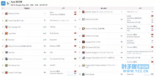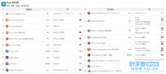 1月全球手游市场回顾:旅行青蛙iOS下载第一,QQ飞车收入第六
