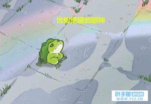 忧郁绝望地望着天空,而且还下着下雨。此情此景,不禁让人想起这个社会,有多少人此时此刻会像这只青蛙一样,露出这种表情。
