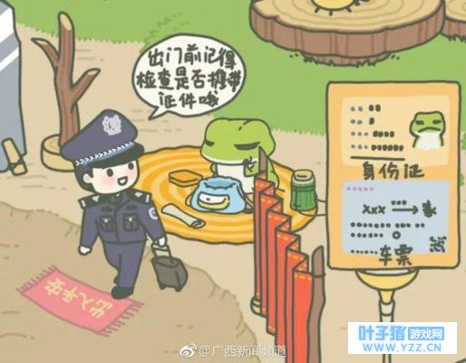 南宁铁路公安处宾阳站派出所民警韦洁莹绘制了一组春运安全乘车漫画 《铁警家的旅行青蛙》