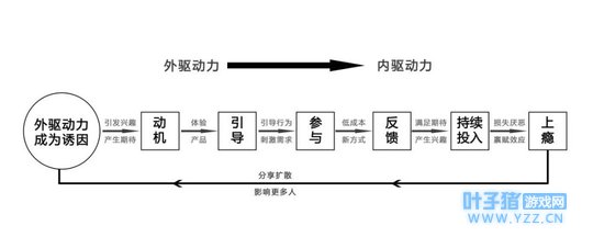 相比于笔记本电脑自带的键盘,你们一定更喜欢敲击更有节奏感的机械键盘。 二、回报 -反馈 不仅是高回报,回报是否容易感知以及回报周期的长度也对人的驱动力有很大影响。 很多做教育的经常会面临这样的问题,学员反馈课程效果不好,因为他们学完后不能很快感受到课程的价值反馈。 拿产品经理培训来说,很多知识体系、思维模型学完不能马上用到,只能存储在脑海中。 相比于理论,他们反而对原型设计更感兴趣,就是因为软件学完就能用,所学即所得,这点在刚入门的新人中体现尤为明显。 有些人对学习、阅读没有兴趣,也是因为如此,没能在短时间内感受到阅读和学习带给他们的价值,所以才会中途放弃——但现实生活中很多回报都是需要长时间投入的,越好的回报越是需要如此。 这种现实冲突也造成了 人们渴望投入小成本就能尽快获得高回报的心理 十分强烈,甚至是不劳而获的博弈心理。 我们知道,人在互联网上的所有行为,其实都是在现实生活中需求的映射。 这种回报在产品中也被称为反馈。 我们会因为在产品中投入了成本(操作成本、时间成本、金钱成本等),却不能在短时间内获得反馈,所以觉得它枯燥无聊、没有意义,转而寻求能快速提供反馈的事情或产品,很多人沉迷于游戏就是如此(因为游戏中能获得的即时、可感知[夸张]、多样的反馈是现实生活中无法比拟的)。 这种投入了成本,并获得回报和反馈的感觉,就是我们所说的成就感。 投入越少,回报越高,感觉越爽,我们的兴趣也就越浓。 指尖陀螺之所以被称为解压神器,也正是满足了这点——因为我们的压力有很大比重来源于对付出与回报不成正比的焦虑和担忧。 所以说,兴趣就是对良好反馈的期待感,不信你把 “你成功引起了我的兴趣”这句话换成,“你成功引起了我的期待”,是不是意思一样? 三、那么,产品如何利用兴趣,驱动用户上瘾呢? 兴趣浓到一定程度,便是瘾。 如果一款产品能在保持低参与成本的情况下,持续提供良好反馈,满足甚至超出用户的期待,诱导他持续投入,那么用户就会上瘾。 结合《驱动力》,我对上瘾模型做了优化,用户从接触产品信息,到体验产品,再到上瘾,中间经历了这些环节:动机、引导、参与、反馈、持续投入、上瘾。