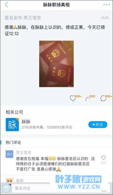2.在尽量短的时间内,让用户触及最好(适合)的内容(服务),创造好的第一印象。 产品的第一印象非常重要的,把优质内容置顶、推荐,放到用户更容易看到的地方,其目的不仅仅是为了增加流量,更是为了把最好的体验留给用户的“第一眼”。 和现实生活中的社交相似,点开APP就如同和人打招呼,让用户感觉产品为他精心准备了很多好内容的感觉,就如同对方热情回应我们的招呼。“谢金钟,我们为你准备了……,”是不是更容易让用户觉得亲切? 3.激发出用户更多的需求。 当用户进入产品后,其实他会有很多潜在需求,但如果我们不去引导和激发,那这些潜在需求就永远不会成为他们使用产品的动机。 下图是脉脉匿名区的几张截图,有人在匿名区晒结婚证,感谢匿名区帮助她找到了真爱。评论的人在祝福之余也不忘留言寻找另一半,所以,谁说脉脉用户就没有根据职业和公司标签来交友的需求?