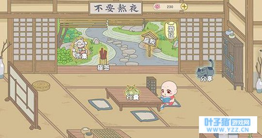 小光头在玩法上和《旅行青蛙》相似,玩家进入到院子,准备饭、工具和开运的物品,小和尚就可以自由地出门化缘,无需更多操作。