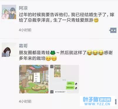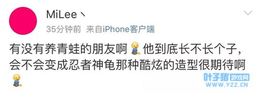 类似的现象在各大社交平台都有出现。 网友馋官的日常说,有时候真的感觉像养了个儿子,关心他的衣食起居..... 这真能找到当父母的感觉?网友西西宝宝作为一名家长发出了疑问: “一般玩这游戏可能大多数都是现实还没养娃的妹纸,养娃和养娃真的不同,娃的交流互动和过程肯定比游戏里多,指望从游戏里找到当家长的感觉,那是你还没有了解当父母的真正感觉.....只希望,别给年轻人先入为主的错觉。” 大部分时间都是非游戏时间,定期上去收四叶草看看小青蛙回来了没,没有互动,没有故事情节,能做的就是等。 “说真的,还谈不上找到当爸妈的感觉,游戏里面的互动少之又少,出去旅行让你准备便当,路上随机邮张明信片,带回一些特产,没了,然后即使没有你,他自己还在茁长成长。”网友木子洋说。