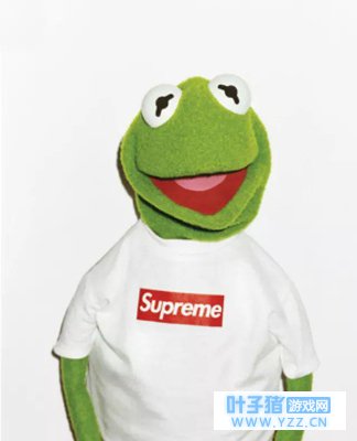 接下来要讲的便是 Kermit在潮流圈也是备受宠爱。卡通人物与时尚潮流品牌合作的例子不在少数,例如很常见的《辛普森一家》、《七龙珠》、《Rick and Morty》等等。当然,全球皆知的布偶们也在这股联名风潮之内,《芝麻街》就是个很好的例子。那 Kermit The Frog呢?其实在 2008年时,Supreme算是破天荒地找来了 Kermit The Frog合作,将 Kermit当作 Supreme一直以来很欢迎的人像 Tee系列的主角,并由 Terry Richardson掌镜。Supreme团队曾经说过:“我们合作联名的对象一定是要很酷的,Kermit The Frog便符合这个要求。” 2008年Kermit The Frog与 Supreme的合作 经过与当时已经算火红的 Supreme合作后,又让更新生代的年轻朋友们认识了一次 Kermit The Frog,让 Kermit The Frog更为受欢迎。
