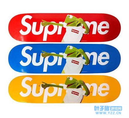 Supreme 2008春夏系列的滑板用上了 Kermit The Frog的图案 除了 Supreme以外,由细川雄太主导并使用古老军布制作服饰而受到高度欢迎的 READYMADE在去年也制作了一只Frogman玩偶,使用 Kermit The Frog的外形用以致敬这只经典角色。