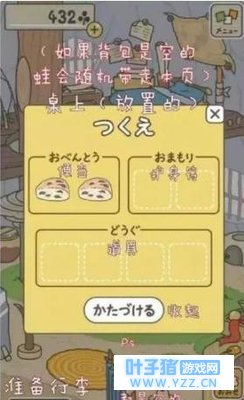 《旅行青蛙》攻略教你如何找到旅游中的青蛙儿子 日本手游《旅行青蛙》一夜爆红,最近可谓是击败了手游界的前霸主《恋与制作人》成为了年轻人日常生活中不可或缺的一部分,上次小编介绍了日文版本下《旅行青蛙》应该如何正确游戏。其中,帮青蛙儿子准备旅行所要用的行李是最为重要的,为什么这样说呢?小编接下来就跟你们细细分析。