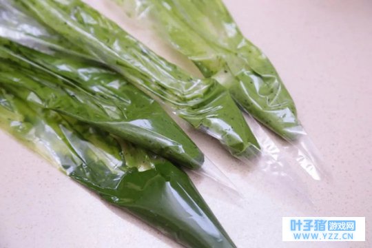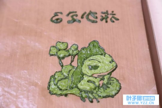 ④ 打印好的图纸放在高温油布下面,用最深的绿色描线,然后按照图中的深浅,取用不同深度的绿色黄油霜描色,将白色的地方空出来。