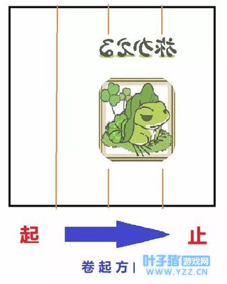 2、用 普通蛋糕卷形式制作: 如果想使用平时制作蛋糕卷的形式直接卷起,将蛙儿子画在整个烤盘3/4处,依照一般蛋糕卷的制作方式抹上内馅,照着下图指示的方向卷起即可。