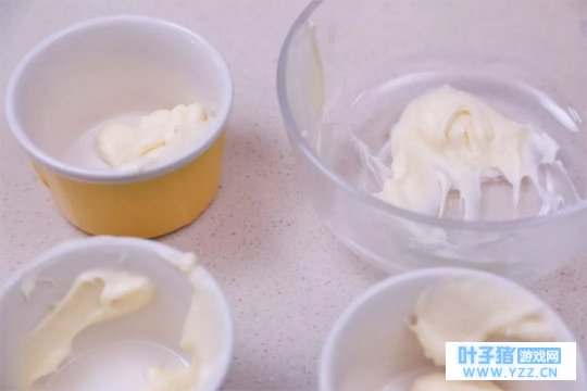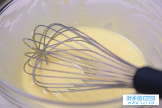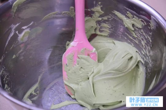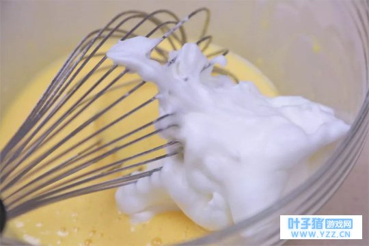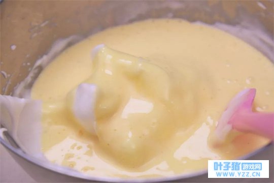 ④ 取1/3的蛋白霜加入蛋黄搅匀,再将蛋黄糊倒回剩下的蛋白霜中翻拌均匀。