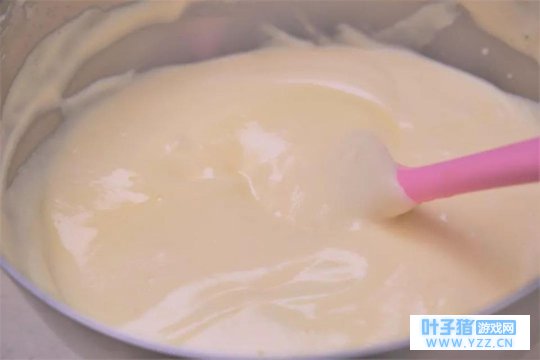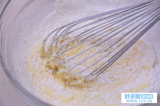② 加入过筛低筋面粉,使用“之”字搅拌均匀。