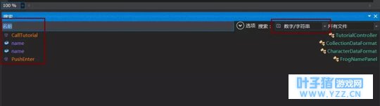 首先来看看怎么修改显示的文字以达到汉化的效果,使用dnSpy点击编辑->搜索程序集搜索右边选择数字/字符串然后搜索名前: