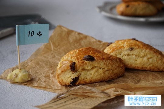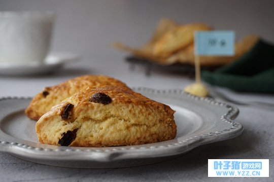 卖的烤饼看起来就像葡萄干司康饼,司康饼是英式快速面包的一种,从制作到产品出炉,一个小时就可以了,而且步骤很简单,可以说小白也能轻松完成,不需要和面技巧,旅行青蛙游戏里面卖的烤饼就能轻松复制。司康饼可以做成甜味和咸味的,我制作的是添加了葡萄干和淡奶油的甜味司康饼,外酥里软,淡淡的甜味和奶味,很香醇。