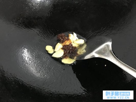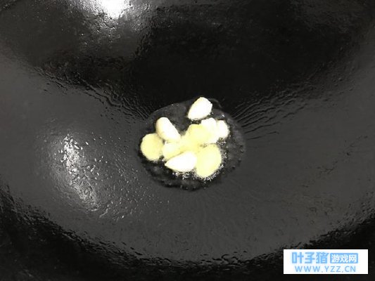 6.炒锅中放适量油。 7.先爆香姜、蒜。