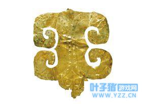 蛙形金箔,商,四川金沙古蜀遗址出土 蛙形四肢圆弧对弯 圆头圆眼 背脊至四肢錾小点 蛙崇拜自远古入蜀 以黄金化形光耀力量