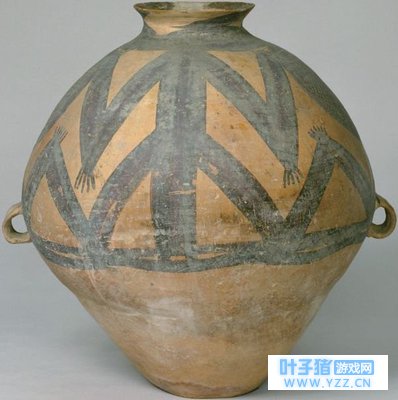马厂类型彩陶罐,新石器时代马家窑文化,约公元前 2200—前 2000 年,故宫博物院藏 人们祈求 拥有蛙类自由穿梭水陆的适应力 预测降雨的先知 或者多产的生殖能力