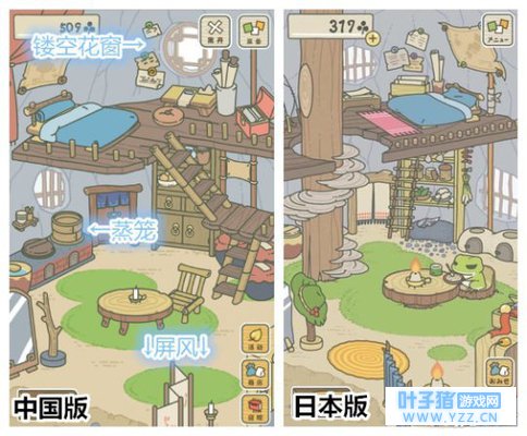 ↑↑蛙儿子的家就加入了很多中国元素 比如原版游戏中的“幸运铃铛”换成了“玉佩”,“帐篷”换成了“竹筒”、“葫芦”、“水壶”,各种“碗”则换成了我国特色的“纸伞”等等: