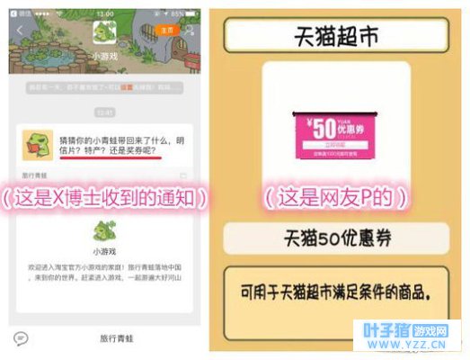↑↑蛙儿子真的有可能带回来奖券?! 而且近年来淘宝一直在力推的社区互动,说不定将《旅行青蛙》改造一番也能实现(参考支付宝的蚂蚁庄园)。 因此在X博士看来,就算阿里游戏代理的这款佛系养蛙游戏早已过气了,但这款成本低廉、又能作为社区功能推动力的游戏,能为阿里游戏和淘宝带来的价值不言而喻。