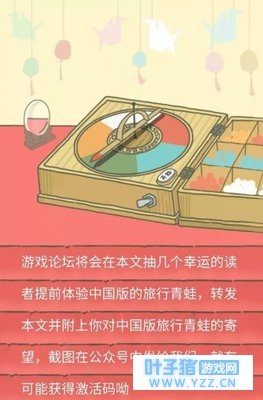 导 日本蛙养的白白净净,不知道中国蛙你们养得如何? 在今年过年的时候,有一只“青蛙”可谓是红遍全球,在当时,想必不少人的朋友圈都充斥着“养蛙心得交流”,而在上个月的2号,阿里巴巴集团就宣布了与日本Hit-Point达成战略合作,获得了《旅行青蛙》的中国大陆地区独家发行的授权。 就在两天前,《旅行青蛙:中国之旅》于淘宝APP中开启了限量内测,而玩家最关心的除了什么时候能玩之外,就是这款《中国之旅》与原版有什么不一样了。