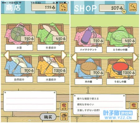 其他道具的种类上有做出了一定调整 帐篷、小碗、灯具等被舍弃 加入了新的睡袋、水壶和纸伞 特别是竹筒、葫芦 和漂亮的纸伞都体现了中国特色