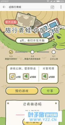 4月2日,阿里巴巴与日本游戏公司Hit-Point达成战略合作,获得授权将在中国大陆独家发行《旅行青蛙》手机游戏。时隔一个月后,中国版的《旅行青蛙》即将开启中国之旅,目前这款游戏已经在淘宝上线内测,用户通过随机抽取的方式来获得内测机会。