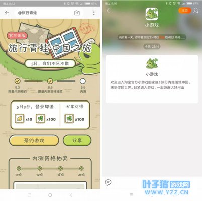 呱儿子回来了! 4 月份,阿里游戏宣布拿下《旅行青蛙》的中国代理权,但让人意想不到的是,中国版的《旅行青蛙》,居然藏在了淘宝里。 据悉,《旅行青蛙》中国版将于 5 月 9 日正式上线,目前已经开启内测。在游戏正式上线之前,我们已经提前拿到了游戏邀请码,下面,就来看看呱儿子的中国之旅吧!