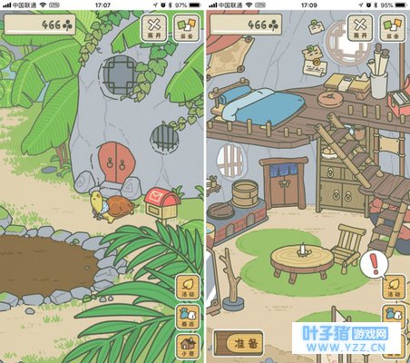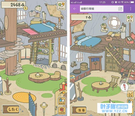 《旅行青蛙:中国之旅》大体上还是延续了原版的界面,但如果仔细观察的话,会发现门口的小伙伴、屋内的装潢,其实都有了不小的改变,更有「中国风」了: