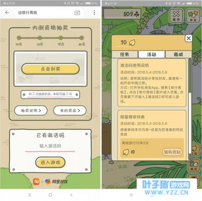 目前旅行青蛙在淘宝上线版本为内测版,在 5 月 6 日淘宝随机抽取用户发放了内测激活码,每个用户都有 2 次机会抽取激活码,四轮抽奖机会,中奖率高得不像话。 目前,一共有 4 种方法进入《旅行青蛙:中国之旅》。 1. 扫码加入「小游戏」