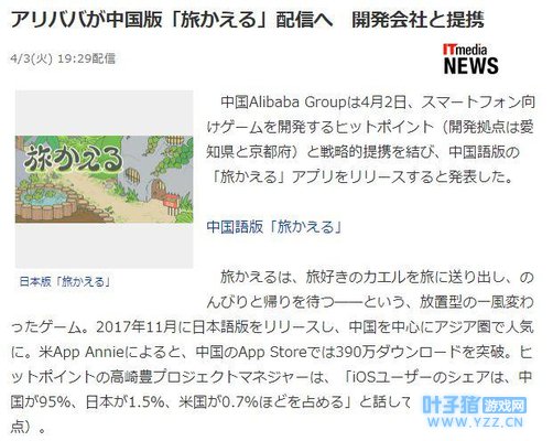 果然是阿里巴巴,《旅行青蛙》在中国很火爆,这至少是个20亿日元的项目了