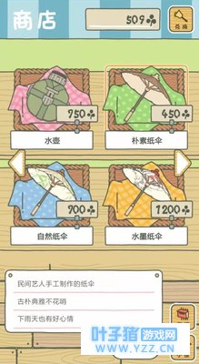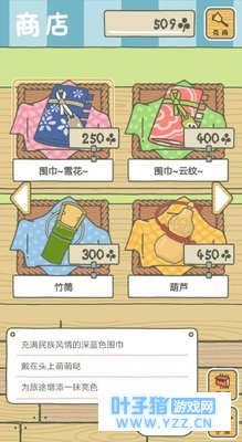 装备上有围巾、水容器、纸伞和睡垫四大类。 水容器三款都各具特色:竹筒、葫芦和水壶,感觉像是根据年代进化而来的。