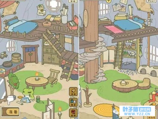 找到「旅行青蛙」的方式有3种,分别是消息栏中的「旅行青蛙」、我的淘宝页面和搜索栏搜索「旅行青蛙」。可以设置系统提醒,每当三叶草长满了,青蛙寄回明信片和礼物了,青蛙回家了,都会收到推送。 < 和原版有什么区别? >相比日本原版,青蛙的家楼梯方向有变化,床头多了幅中国地图,楼梯下方存了几坛酒,对面还有一个如假包换的中式土灶!门窗也都是中式的,看起来精雕细刻,美不胜收。