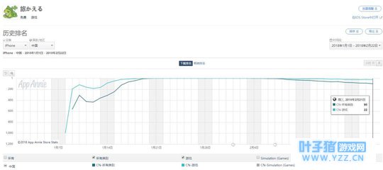 所以这种寻求轻松游戏方式的诉求会始终存在,只是《旅行青蛙》将这个市场痛点集中体现出来而已,也不会存在其他类型的游戏来挤压《旅行青蛙》的生存空间,正是因为类似《王者荣耀》、《绝地求生》这种的游戏在攻城略地才催生出这种意图追求更轻松游戏方式的诉求。 也就是说,如果市场上难以在短期内推出比《旅行青蛙》更加精良的产品,那么就很难说这款游戏就“凉”下去了。 已经处于平稳期的《旅行青蛙》 现在的《旅行青蛙》度过了一个爆发期,进入到一个平稳期。 根据App Annie发布了最新的1月全球手游指数榜单,《旅行青蛙》凭借在中国广受欢迎,强势夺得2018年1月全球iOS下载榜冠军位置,而据一些外媒的报道称,这款游戏的下载量在一个月的时间内已经突破了1000万。