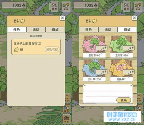 国产“蛙儿子”带回的特产 令人有些哭笑不得的是,《旅行青蛙:中国之旅》的本土化程度很是深刻,我们在其中发现了疑似氪金点:游戏增设“活动”按键,玩家完成每日任务可获得金叶子,而金叶子可直接购买三叶草。然而在不久前,阿里游戏相关负责人曾表示,这款游戏初期并没有考虑商业化的问题。诚然,游戏在现阶段确实并未设置消费系统,但金叶子的出现,对于“游戏初期没有考虑商业化”的说法,难免显得有些打脸。