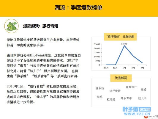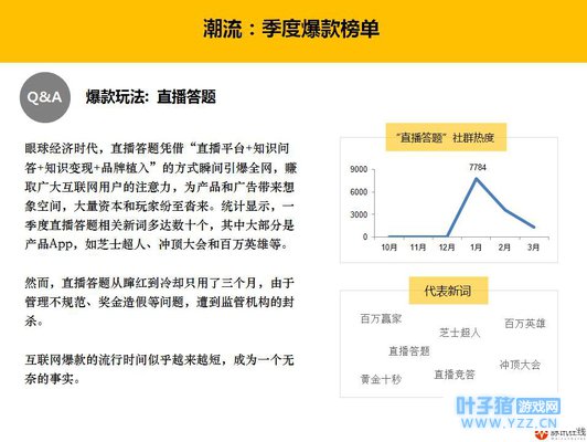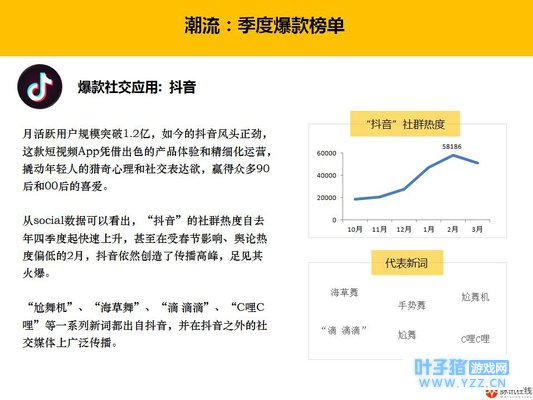 潮流篇 哪些产品和概念是2018一季度的爆款?经数据统计,抖音、旅行青蛙、区块链和直播答题等刷屏级热点入选了榜单。 脉讯“社群热度”指标考量了这些爆款在微博、微信公众号、论坛、资讯/社交App、短视频和直播等渠道的传播情况。